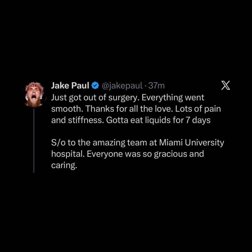 After the fight, it was confirmed that Paul suffered a broken jaw, an injury severe enough to require surgery. As a result, he received an indefinite medical suspension, meaning he cannot compete again until cleared by physicians.